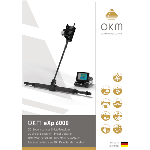 The eXp 6000 ground scanner and metal detector is one of OKM’s top of the line detecting tools for treasure hunters, metal detectorists, archaeologists, prospectors, gold seekers and ground surveyors. This detector is completely wireless and can be controlled via touchscreen, video eye glasses or notebook. It is the world’s first 3D ground scanner that utilizes the innovative OKM Telescopic Probe which can be extended to 124 cm (4 ft).